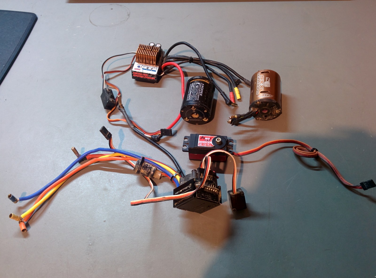 - RC Racing Pack Lipo 7000mAh 7,4V 30C (ist leicht gebläht, außen 25,7mm und in der mitte 28mm dick) (10€)