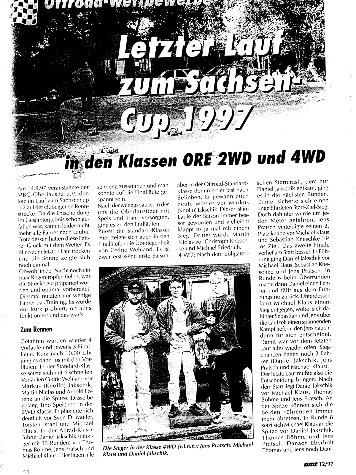 Los gehts es mit einem Artikel aus der AMT. ... für die Unter-25-jährigen ... das war eine Zeitschrift aus bedrucktem Papier. ;) Gibts heute nicht mehr - im Gegensatz zum Sachsencup. Den gibts heute noch / oder wieder: