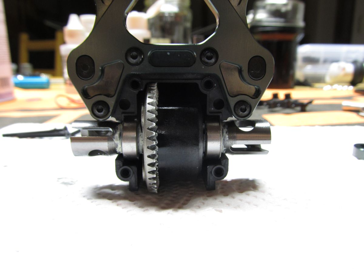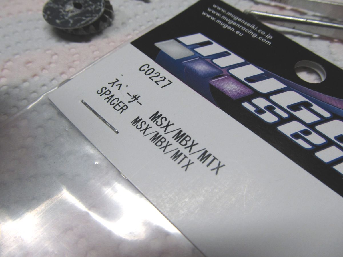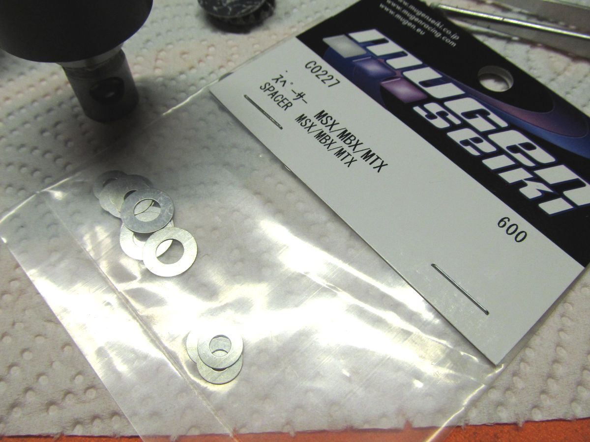 Die Lenkplatte über dem Diff musste unbedingt aus Carbon sein. Es ist nicht das original Mugen Zubehörteil sondern die preiswertere RT (Reckward Tuning) Platte. Dazu passen sehr gut die (Achtung Maddin) Alu-Rosetten