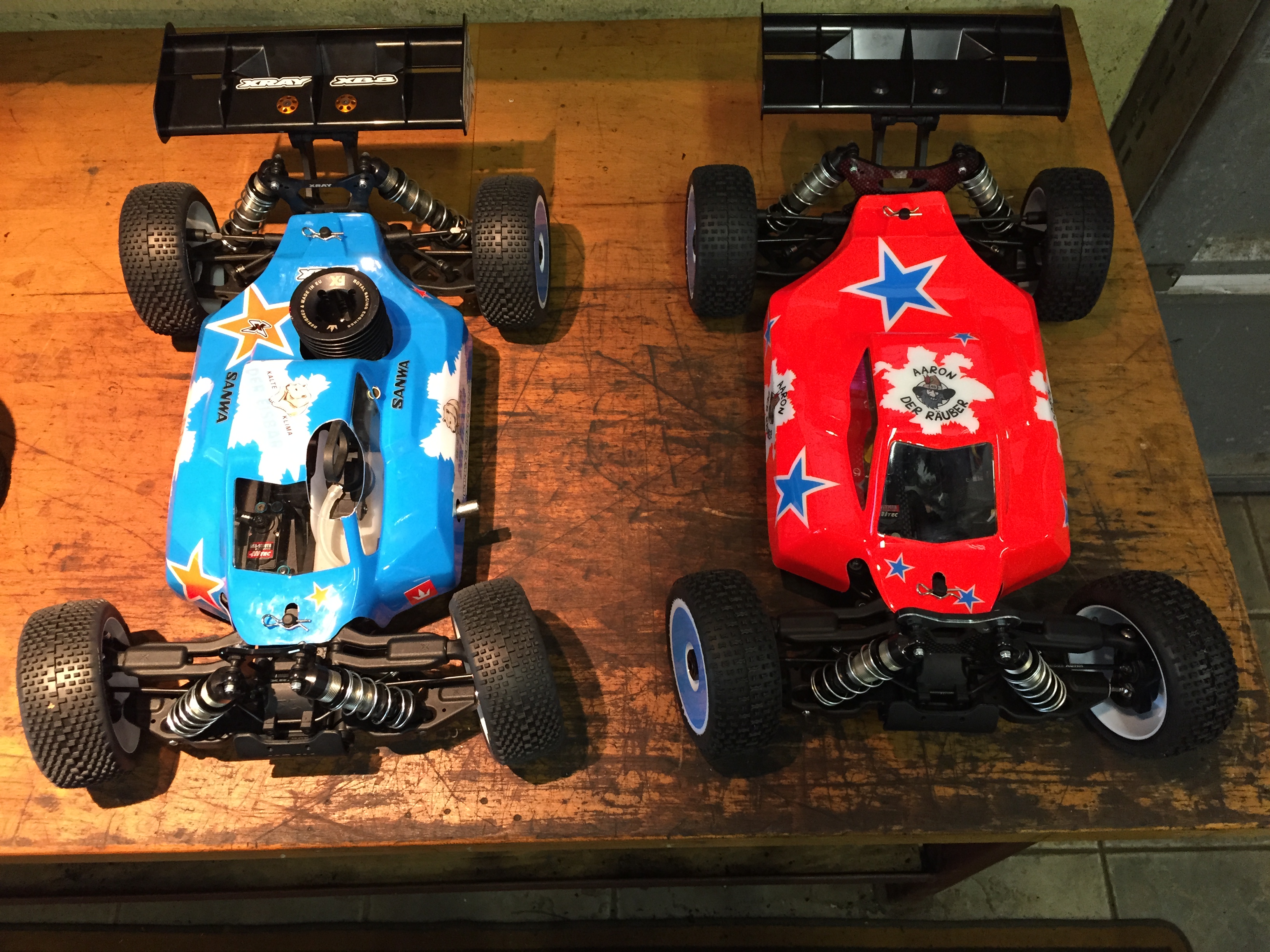 Dieses Jahr mit Mugen MBX-7R Eco (2x) und MBX-7 Nitro. Wobei Elias mal richtig auf seine Kosten kommen soll. Ich will nur ab und zu mal bei den Verbrennern bissel mitfahren (mit funktionierender Kupplung, festgeklebten Reifen und ohne Motorabsteller :D ) ... der Sprit soll ja auch nicht schlecht werden :D