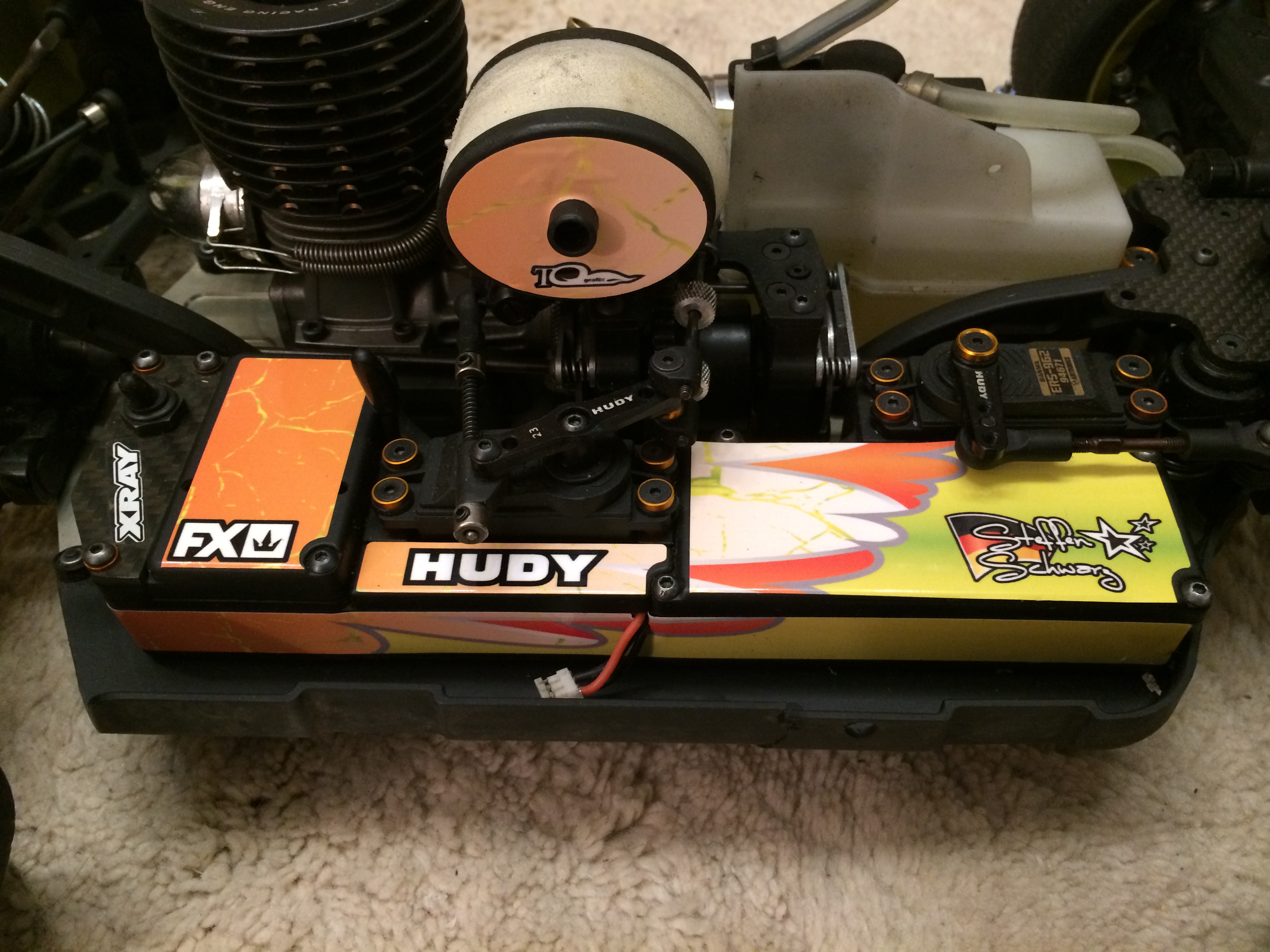 so der "Meister" des vergangenen Jahres hat sich ein bißchen optisches Tuning mehr als verdient... und wird auch in diesem Jahr wieder mit den Komponenten Fx Motor mit Orcan Fuel , Sanwa Servos, Sanwa Funke an den Start gehen.