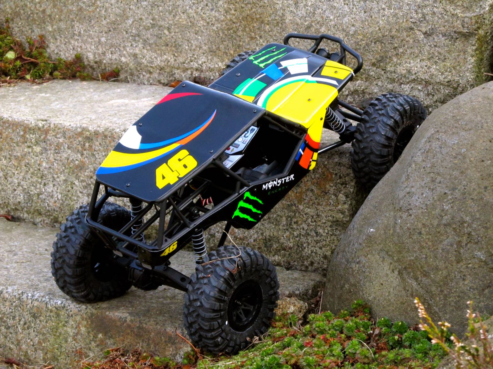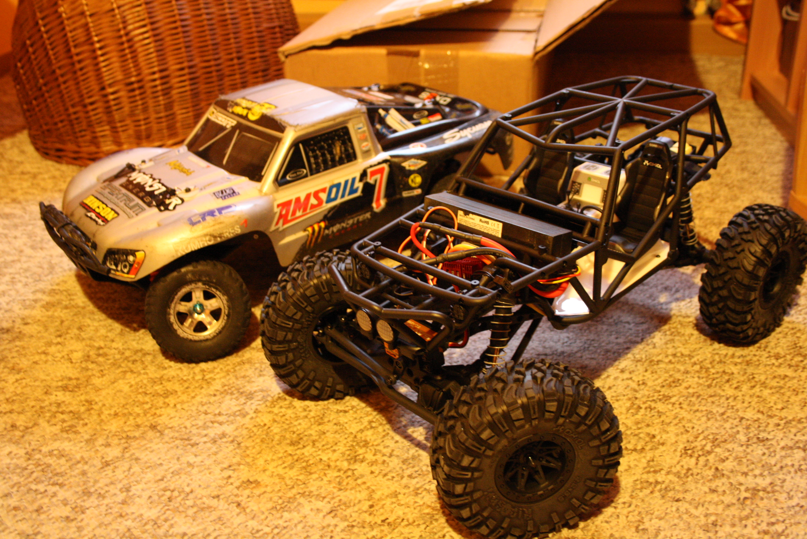 Der Wraith ist schon weiter zusammengebaut. Elias hat den kompletten Käfig montiert und die Innenverkleidung eingesetzt, die uns Arne effektvoll lackiert hat. Ich mache die Tage mal einige Fotos davon und stelle sie ein.