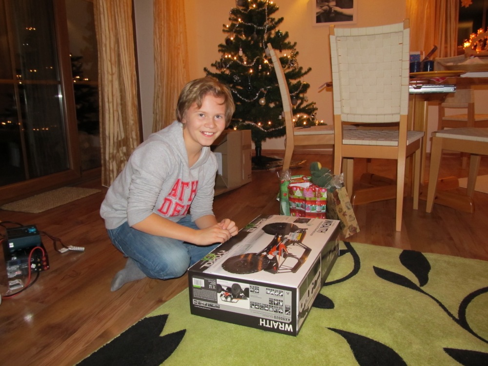 Also kurz informiert und für den Wraith entschieden. Elli baut inzwischen mit mir zusammen abends den Bausatz auf. Also er baut und ich korrigiere gegebenenfalls und es macht ihm Spaß! Ich hoffe, dass er dann in der Zeit zwischen den Rennwochenenden auch mal richtig damit ins spielen kommt. Gelände dafür ist ja ausreichend vorhanden bei uns zu Hause. Bis zum Wald sinds 50m und da geht ein Bachlauf durch - also ideal. :D