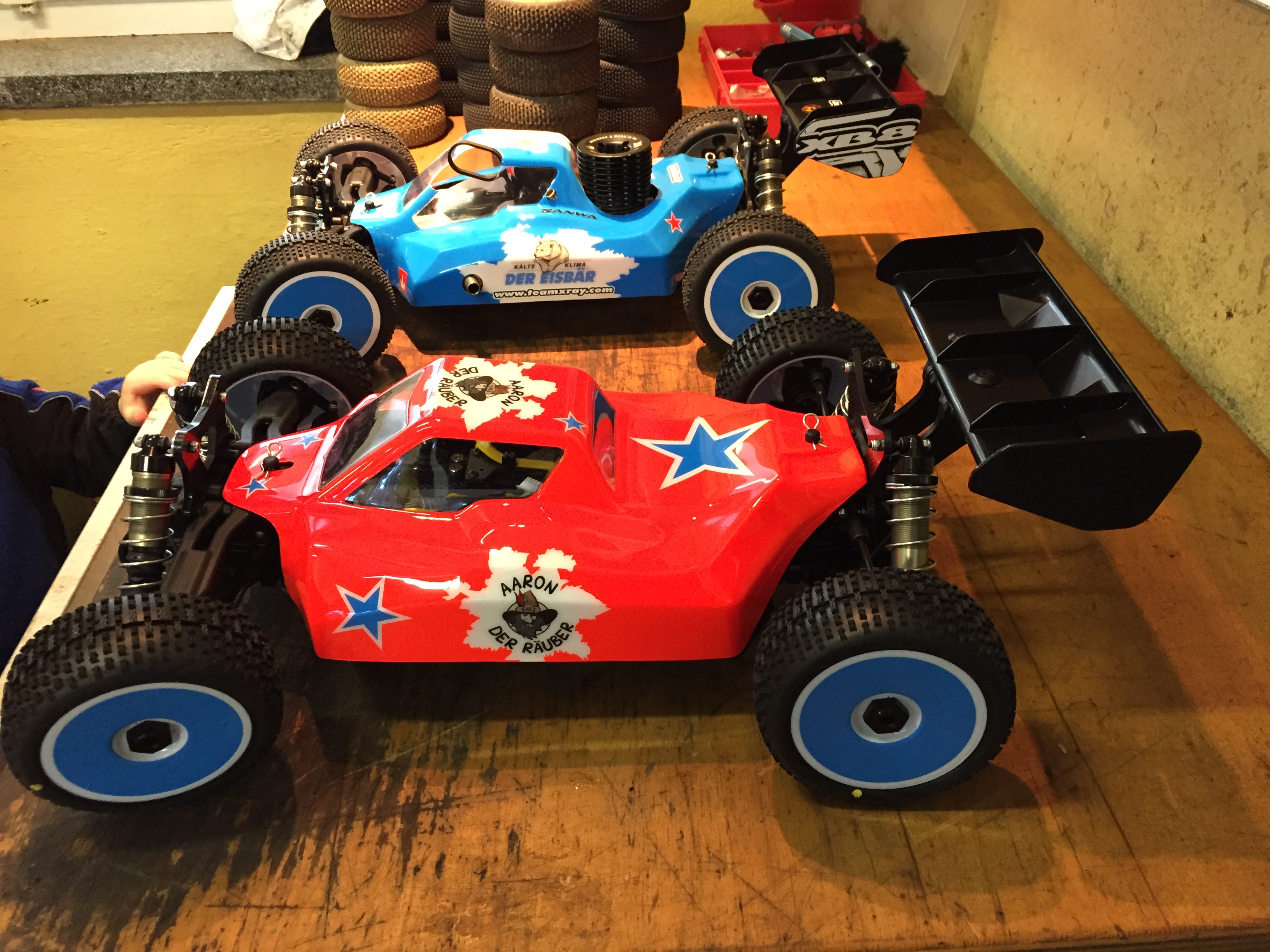 Dieses Jahr mit Mugen MBX-7R Eco (2x) und MBX-7 Nitro. Wobei Elias mal richtig auf seine Kosten kommen soll. Ich will nur ab und zu mal bei den Verbrennern bissel mitfahren (mit funktionierender Kupplung, festgeklebten Reifen und ohne Motorabsteller :D ) ... der Sprit soll ja auch nicht schlecht werden :D