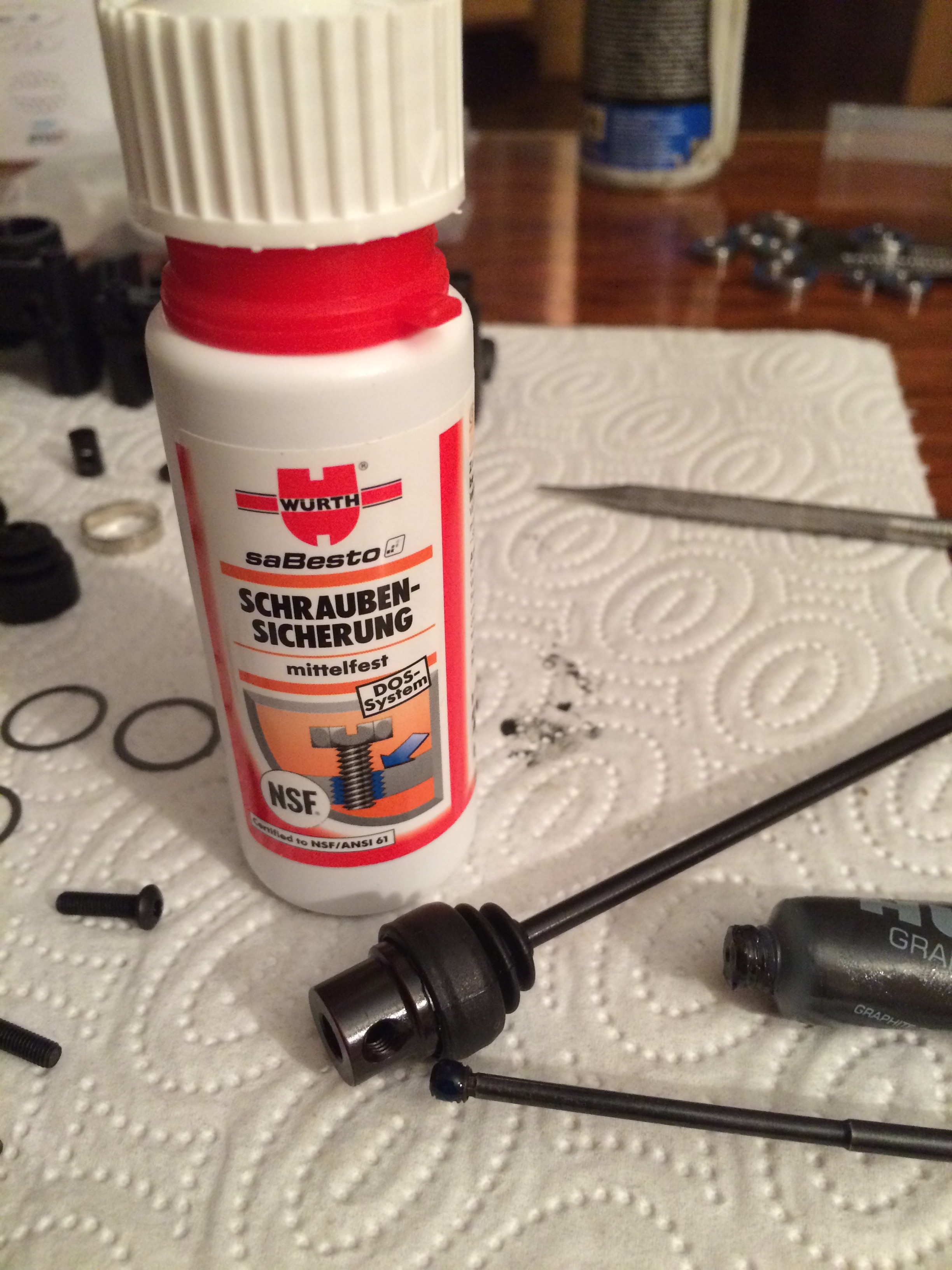 Die Lenkpfosten von unten wieder mit Schraubensicherung versehen...