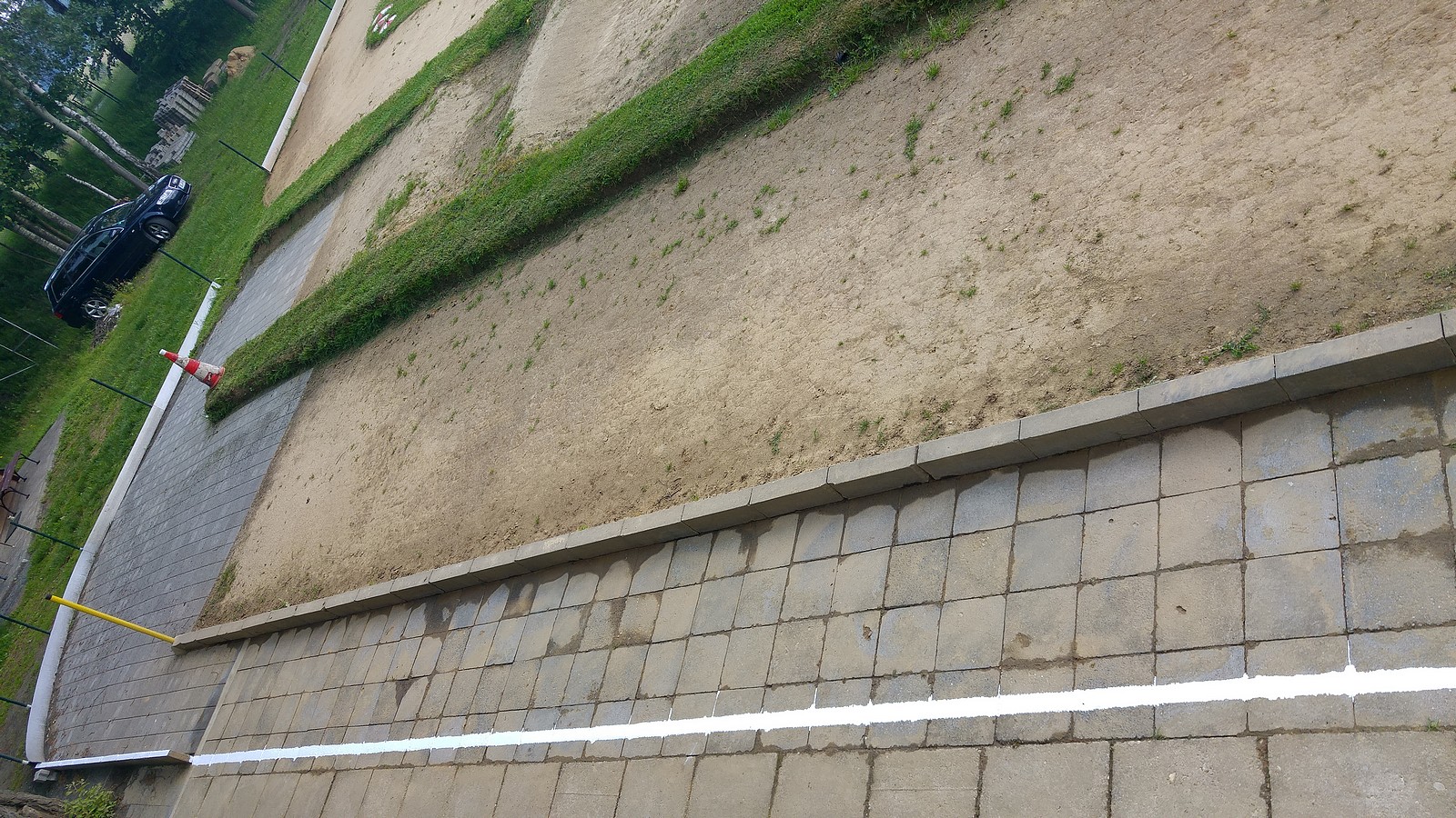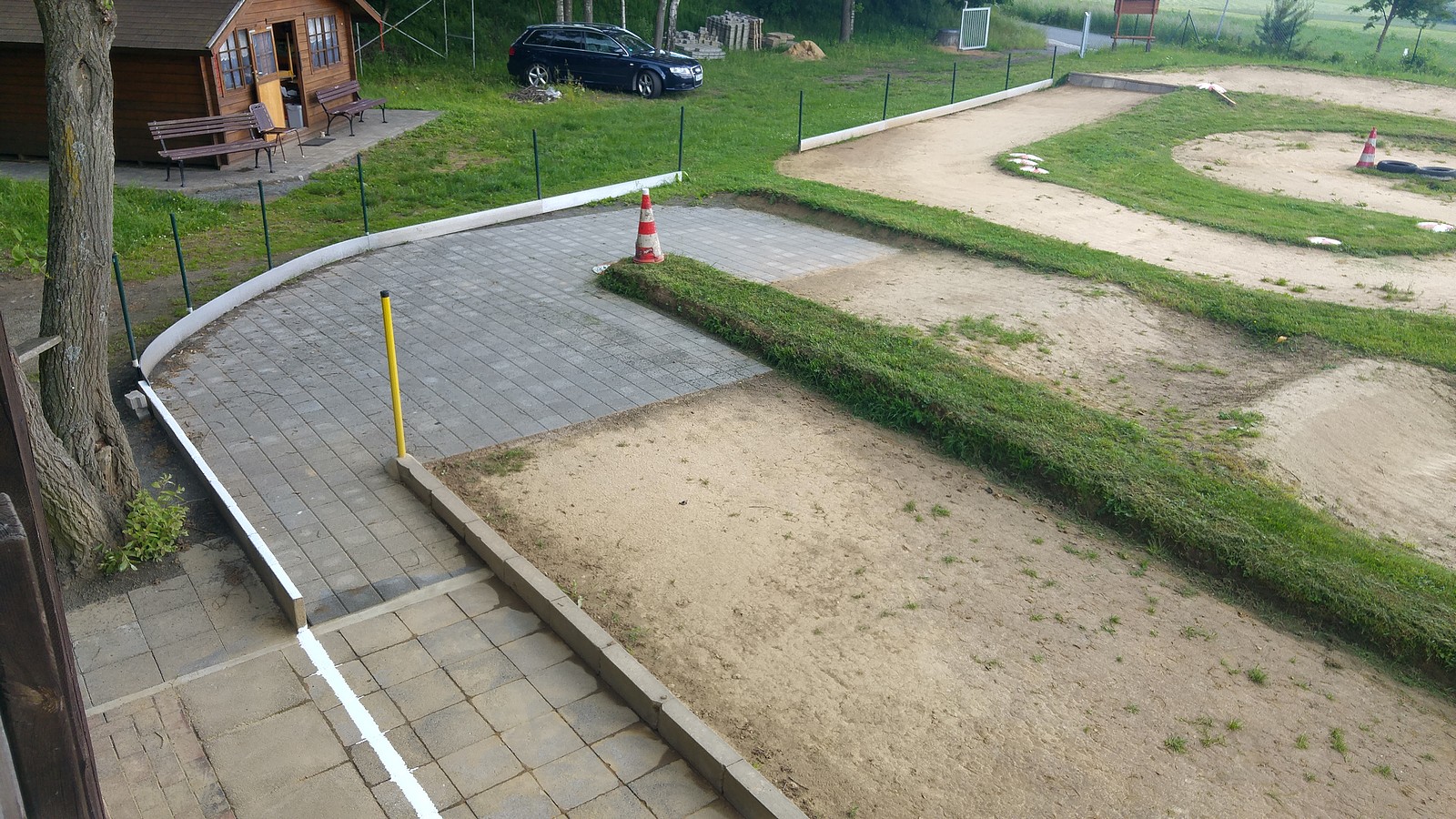 Die Sprungkombi vor dem Fahrerstand scheint deutlich einfacher zu sein, als im letzten Jahr. Das ist auch gut so, denn sonst gibts Abrieb an den Dachteilen in der folgenden Pflasterkurve. Das Pflaster hat relativ viel Grip - die Kurve hängt leicht nach außen.